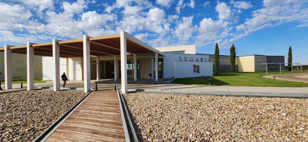 El edificio de Legaris, con líneas puras y materiales nobles, transmite una serenidad que parece dialogar con el paisaje. En su sala de barricas, el tiempo es protagonista: las luces tenues y el aroma a roble crean una atmósfera casi monástica.